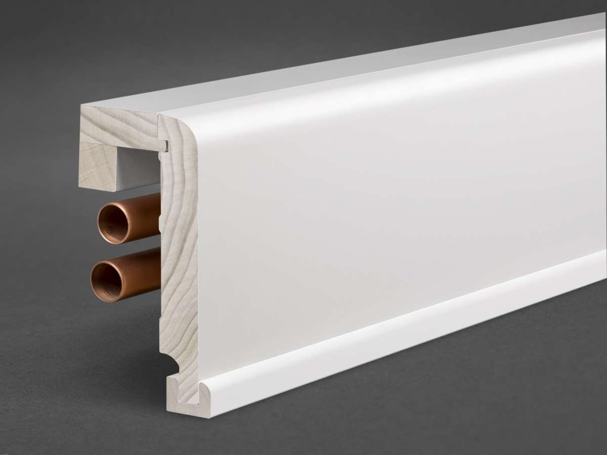 Produktinformationen "Massivholz weiß lackiert 125x65x2500 mm Rohrabdeckleiste Oberkante abgerundet"
