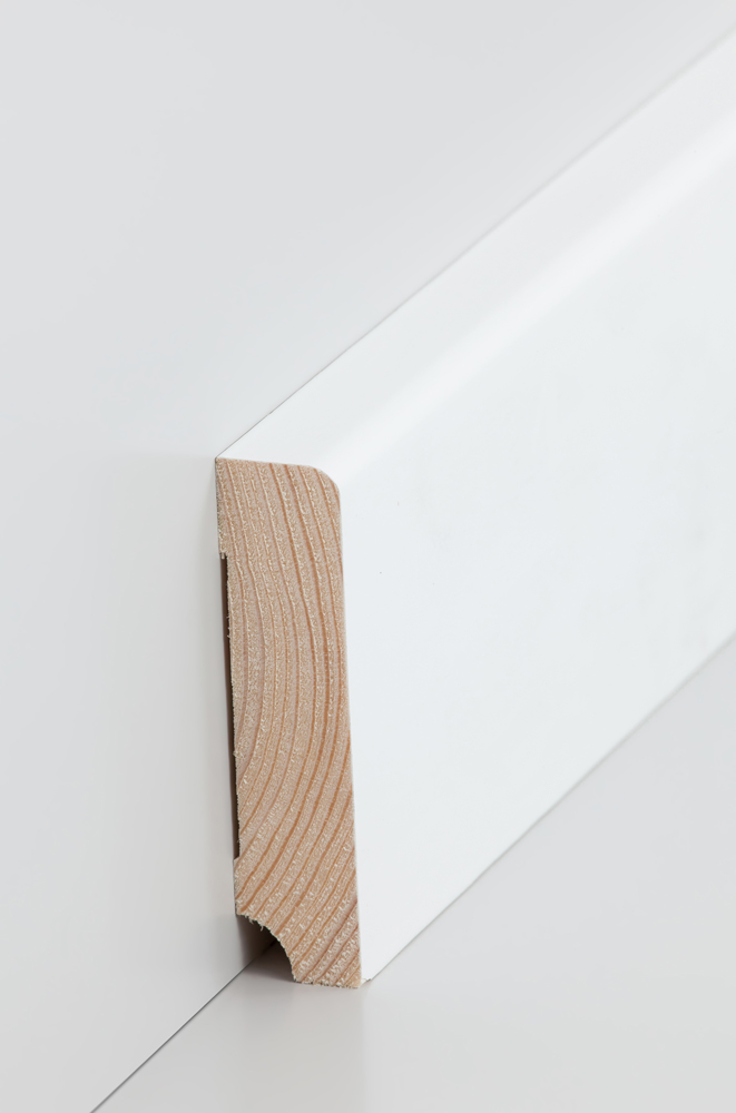 Weiße Kiefer Sockelleiste 80x19x2500 mm Oberkante abgeschrägt