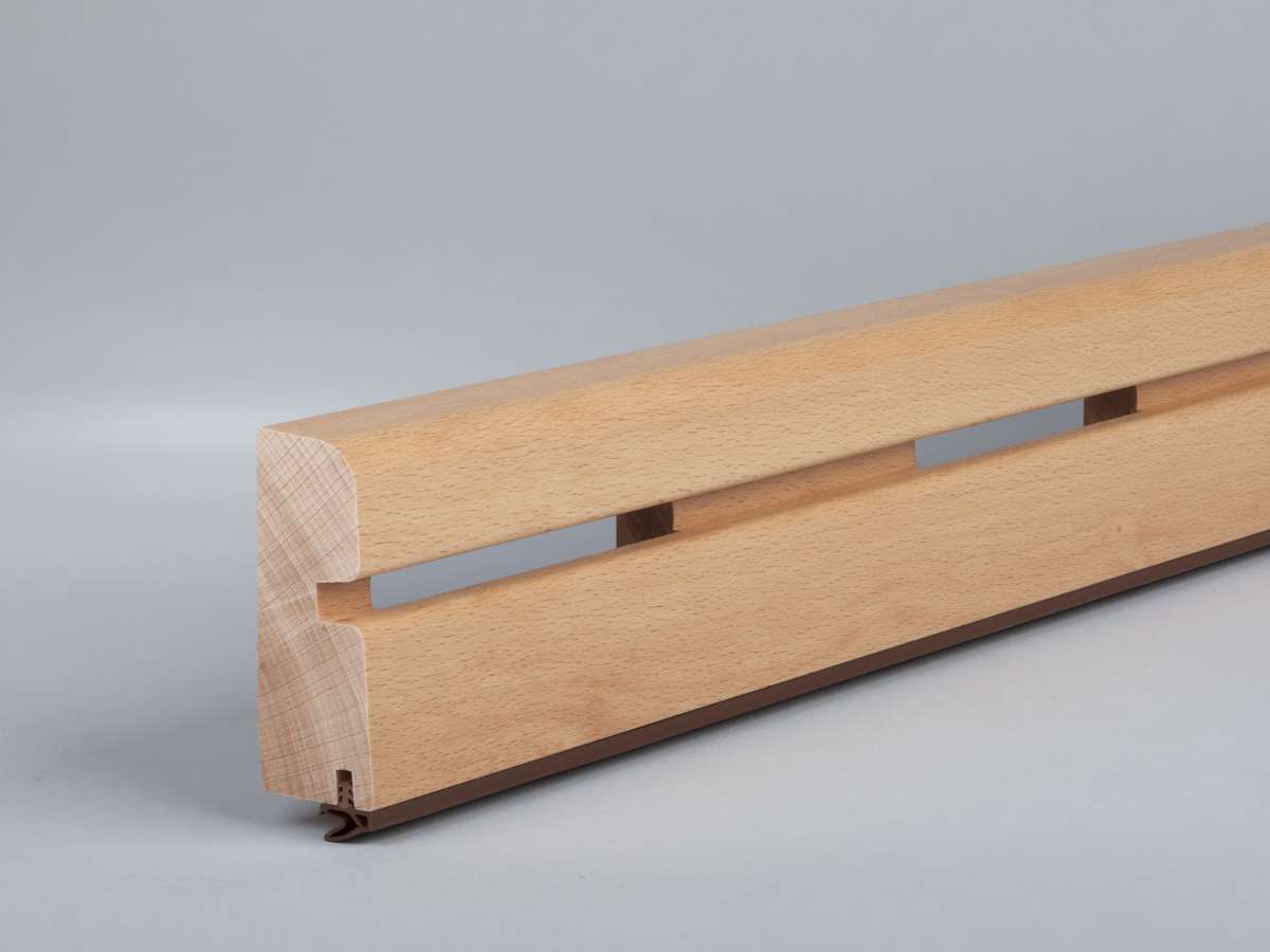 Produktinformationen "Buche 70x28x2500 mm Oberkante abgerundet mit Lüftungsschlitzen/Gummilippe lose"