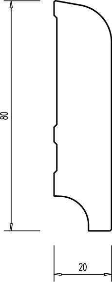 MDF 80x19x2400 mm Oberkante abgerundet (ohne Folie)