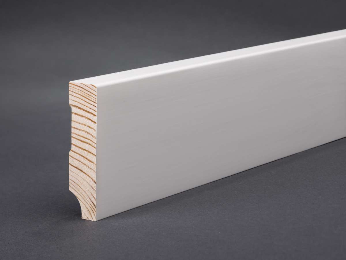 Holzart: Kiefer Stärke: 15 mm Höhe: 58 mm Länge: 2,40 m Oberfläche: weiß lackiert (RAL 9016 Verkehrsweiß)